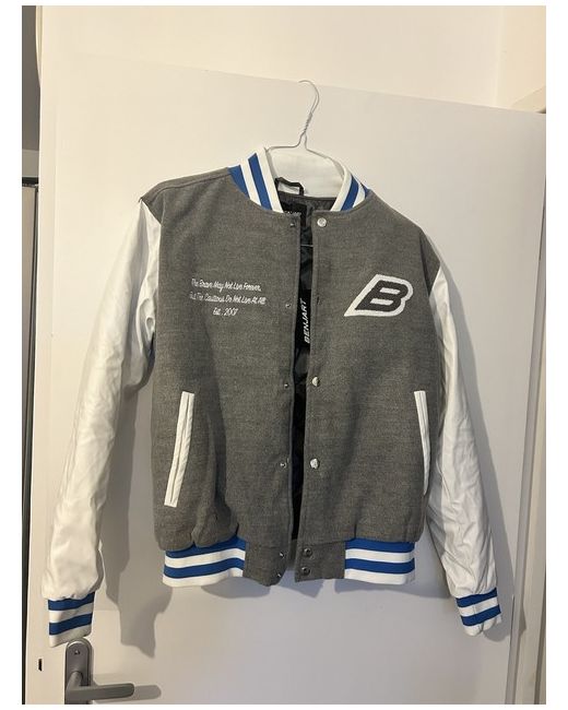 Show off your style with this Benjart Varsity Grey and White Jacket. Made from high-quality polyester, this bomber jacket is perfect for any sports lover. The elastic waist and pockets make it convenient for all seasons and purposes. The grey jacket is embroidered with a logo giving it a unique and fashionable look. The varsity jacket is designed for men with a size type of regular and department of men's clothing but will also fit women who wear up to a size medium. The lining material is made of polyester ensuring comfort and durability. The jacket's style is perfect for any college or sports theme, and the accents give it a distinctive feel. Get this perfect piece for your wardrobe now!