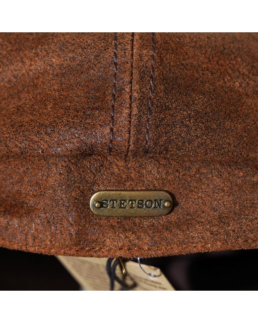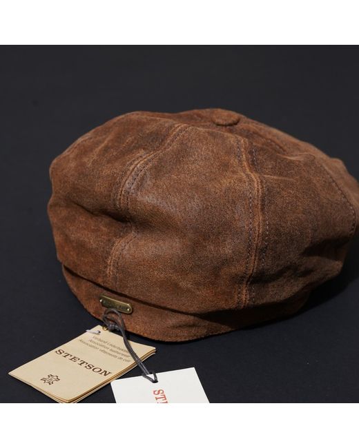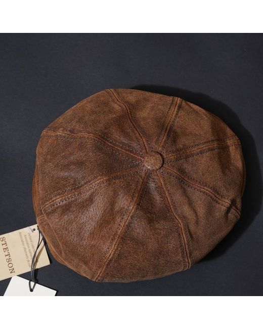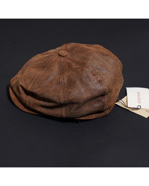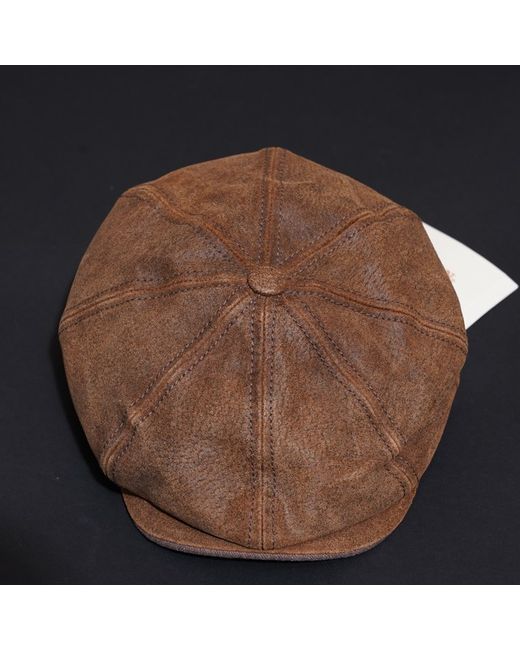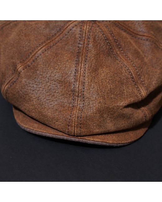 Burney 8 Panel Bakerboy Cap. Shell: 100% Leather. Lining: 100% Cotton. : Brown No. 6. Size: Small ( S ). Pictures are of the actual item.