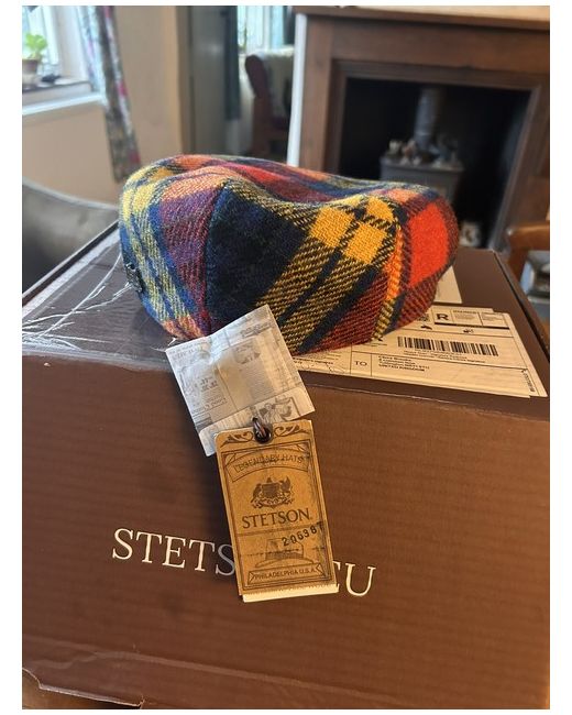 XL (61cm) Stetson multi coloured tweed flat cap.