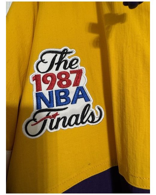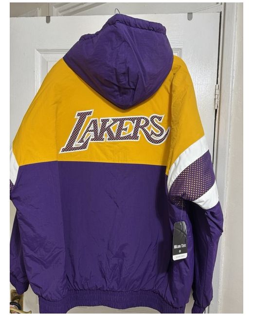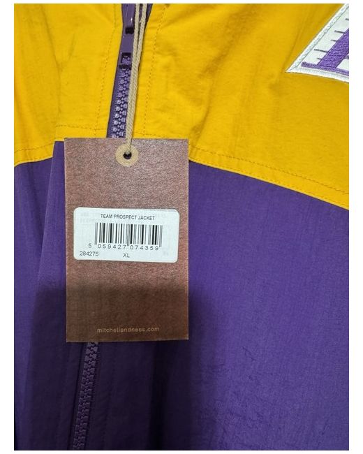 Brand new with tags, this Mitchell & Ness Lakers jacket in size XL is a regular fit parka style jacket made of polyester. The jacket features a multicoloured design with a sports theme, perfect for men who want to show their support for the Lakers.