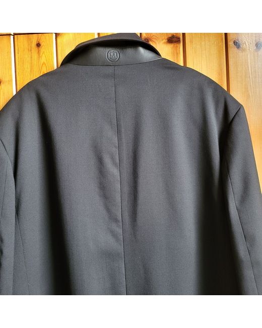 This gorgeous blazer oozes luxury and style. Lambskin Leather trim behind collar with logo. BNWT EXCELLENT CONDITION, small pin prick on pocket flap from where the security label was. Length 31". Real horn buttons.