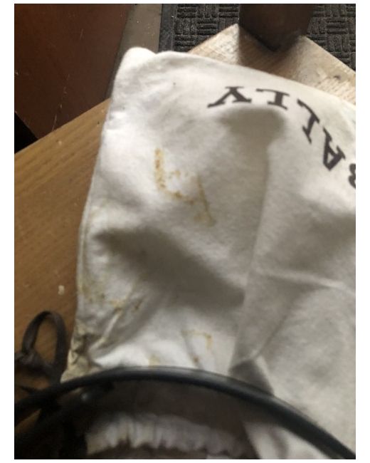 Brand new never used The cream outer bag is stained because it was not stored correctly The belt is in mint condition. New