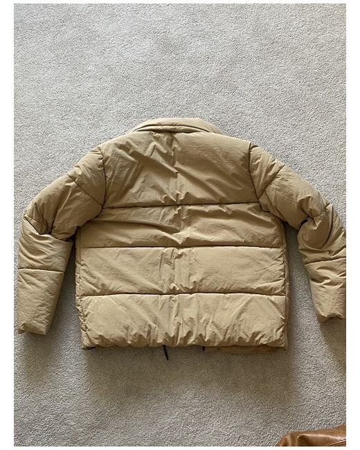 Champion small logo puffer jacket in tan. Size L.