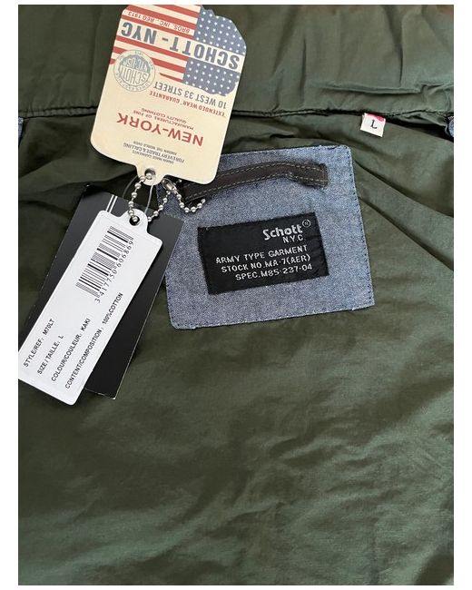 Schott Nyc M70Lt Lightweight Jacket In Green. Hood In Collar. Size Large. 100% Original.