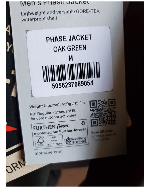 montane phase jacket Oak Medium New