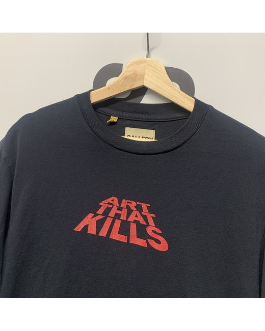 Logo print to the front and back, designer logo at the back, ‘Art That Kills’ Stack T-Shirt. Gallery Dept. Black Cotton STACK T-shirt, ribbed crew neck, dropped shoulders. • Machine Wash.