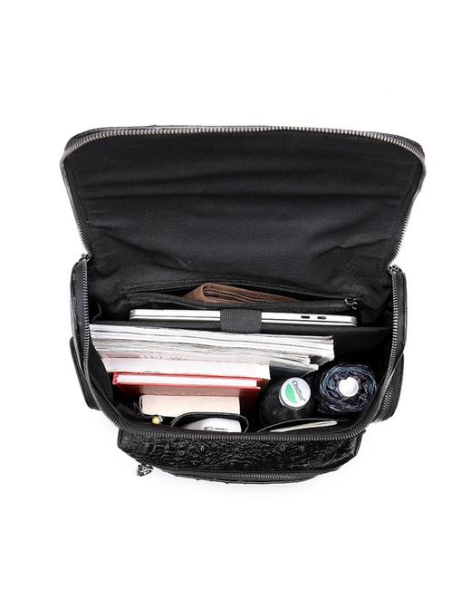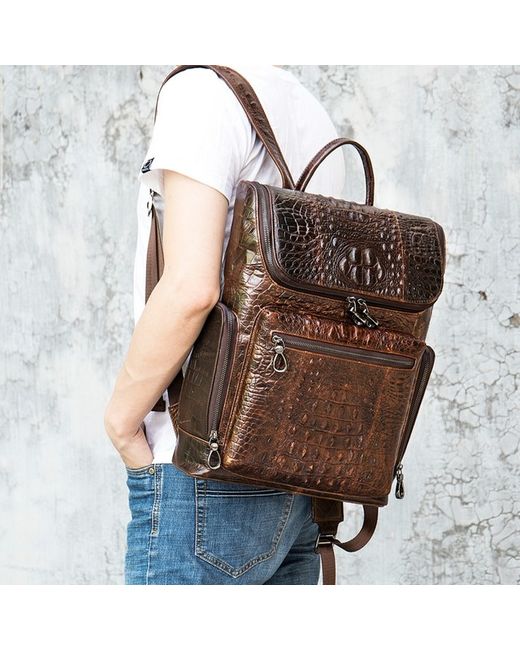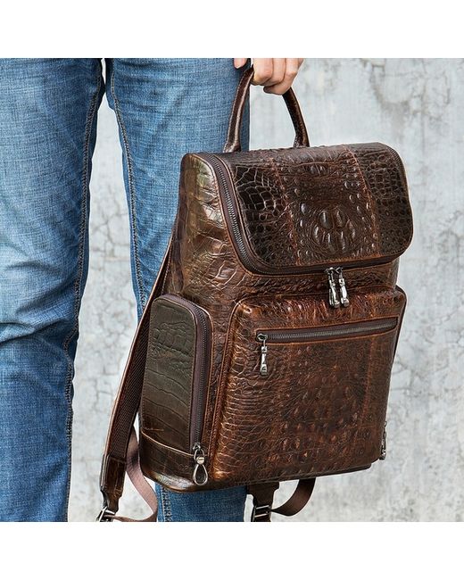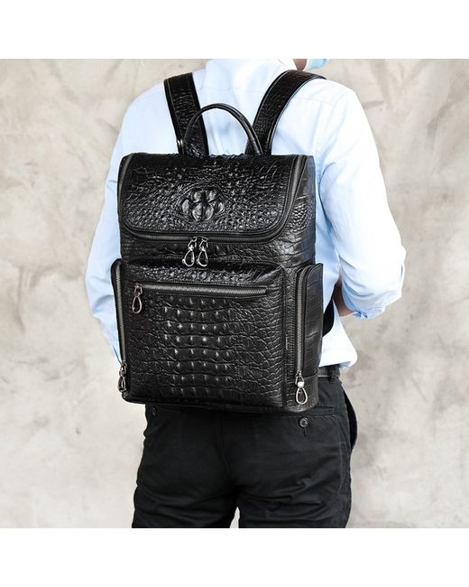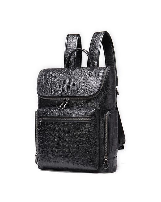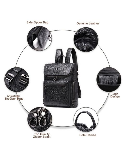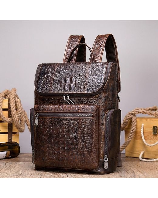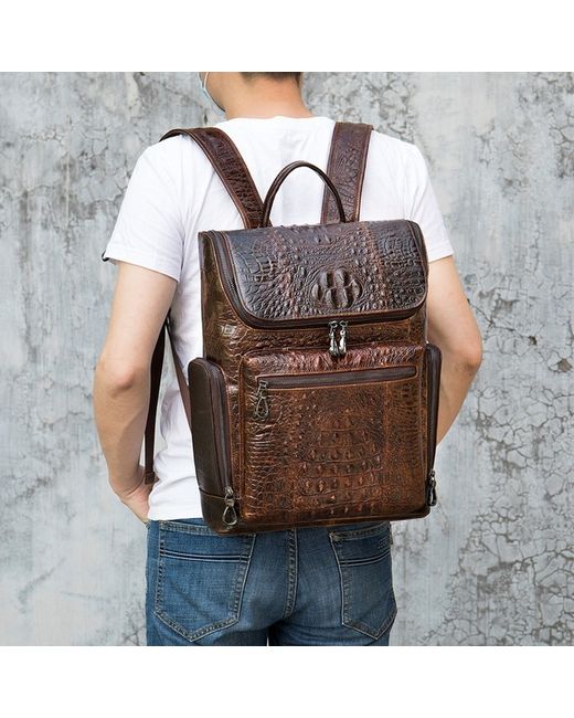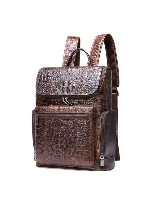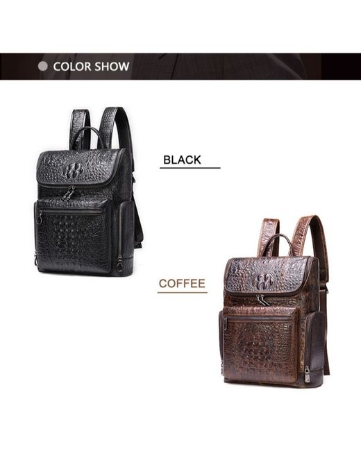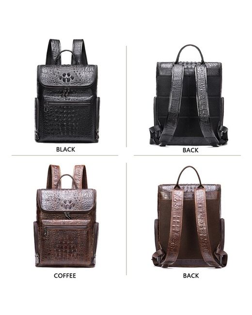 Stylish men's leather backpack with a embossed pattern, perfect for business or travel. Made from genuine leather, this rucksack features multiple compartments for a 14-inch laptop, documents, and daily essentials. Adjustable shoulder straps and an ergonomic design provide comfort during use. Available in Black and Coffee. Dimensions: 39cm (H) x 30cm (L) x 10.5cm (D).