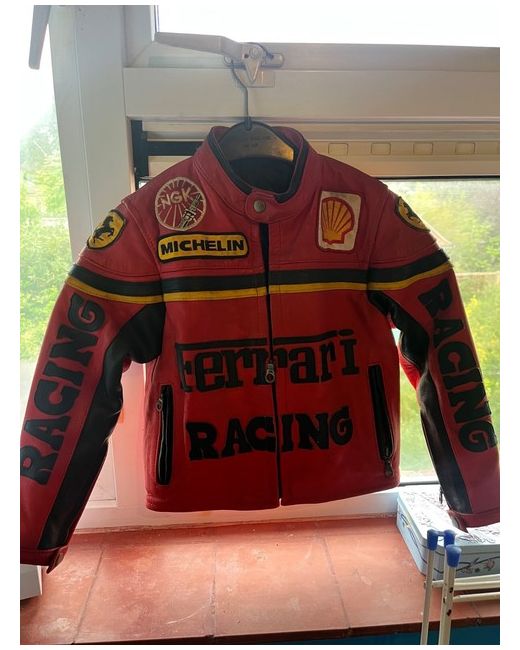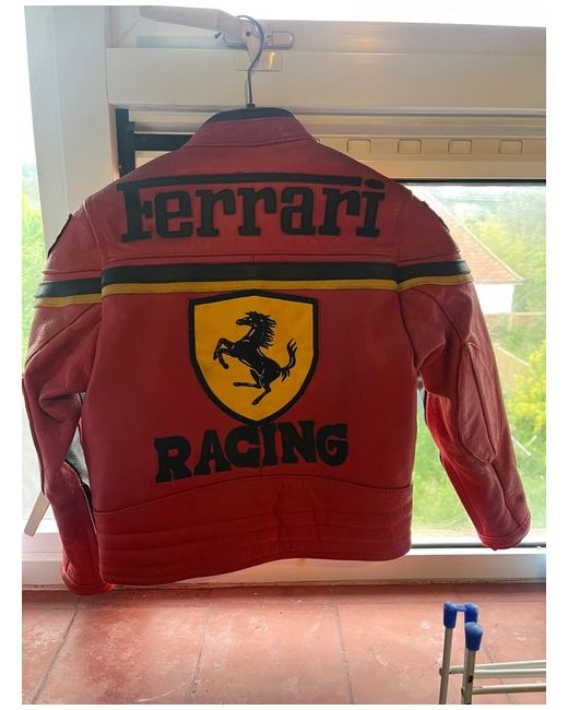 ORIGINAL Ferrari Leather Jacket in size XS or child yr 8/10 . Limited edition made in Italy 1990. The jacket features a red colour with badge patch and embroidered logo detailing. Made from high-quality leather with a polyester insulation, front full zip closure and zipped pockets.