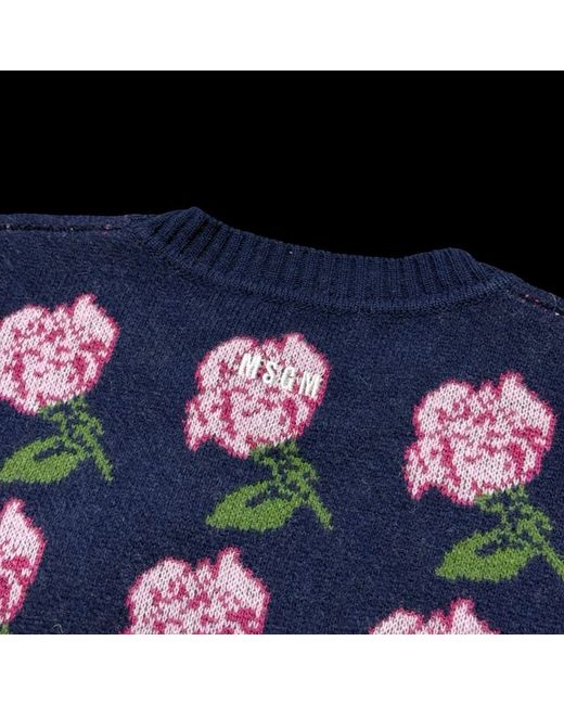 BNWT Men’s MSGM Rose Jacquard Sweater Medium Wool Blend RRP £380 New with tags RRP £380 80% wool Navy blue with pink roses Pit to pit 23” Length 27”