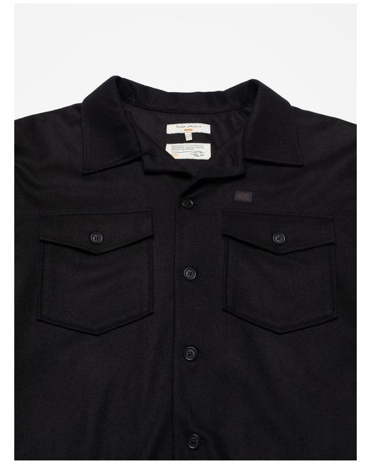 This gives a light fabric with a soft handle and excellent drape and luster. When you buy this shirt, you can be sure Nudie have paid their share of living wages. Recycled woolRecycled polyesterRecycled polyamideExternal logo labelCorozo buttonsRegular fit60% Wool / 35% Polyester / 5% PA.