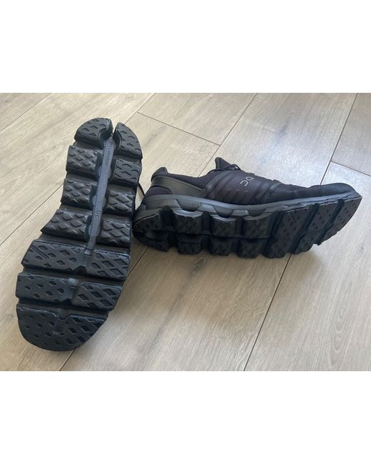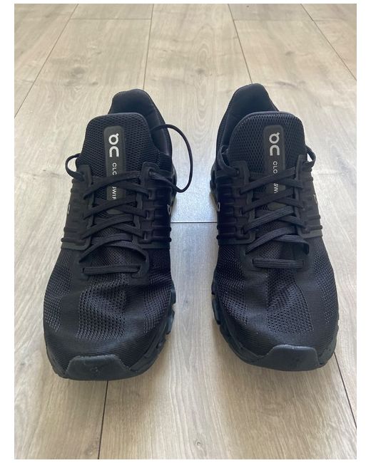 The On Cloud Men's Trainers - On Running Cloudswift 3 are a stylish and high-performance pair of sneakers designed for running and jogging. With a sleek black mesh upper and lace-up closure, these trainers offer both comfort and style. The UK size is 10.5, equivalent to a US size 11, making them suitable for a range of athletic activities. Manufactured in the current year, these trainers feature a sporty theme and are part of the On Cloud product line, ensuring quality and reliability for the modern man on the go.