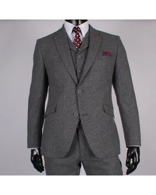 The two-button jacket has a stylish cerise lining for a sophisticated touch. Other features include a notch lapel, 3 button cuff, straight pockets and side vents. Can be worn as a two or grey wool 3 piece suit that's ideal for weddings.