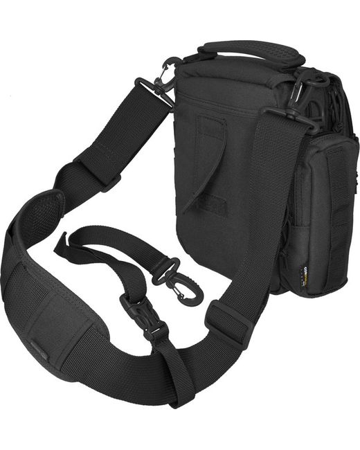 Manufacturer: Hazard 4. Two sets of D-rings for flap over or under use. Back belt strap holds bag down when drawing gun.