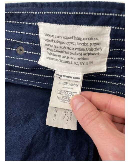 100% Authentic Engineered Garments S/S 20 Indigo Bomber Jacket Size Large fits boxy Brand new with tags An incredible jacket from the brand made from a blue indigo cotton with white dot print, double front popper closure and wool ribbed cuffs / collar Measures: Chest across 26.2” Length at back beneath collar 27.2” I post worldwide via an express tracked service, check out my other items :)