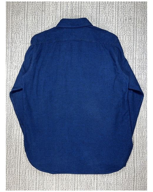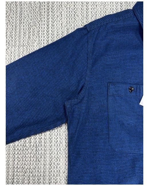 Men's Blue Work Shirt Large Flannel Houndstooth Usa
