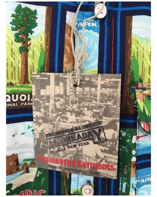 Button down shirt from Engineered Garments. Very practical shirt. Regular fit and is made up in a vintage American National Parks print. Placket front. Single chest pocket with a flap and button and pen hole. Button down collar. Button fasten single cuff and curved hem. Size Small. Can fit a Medium. 100% Cotton Made in USA