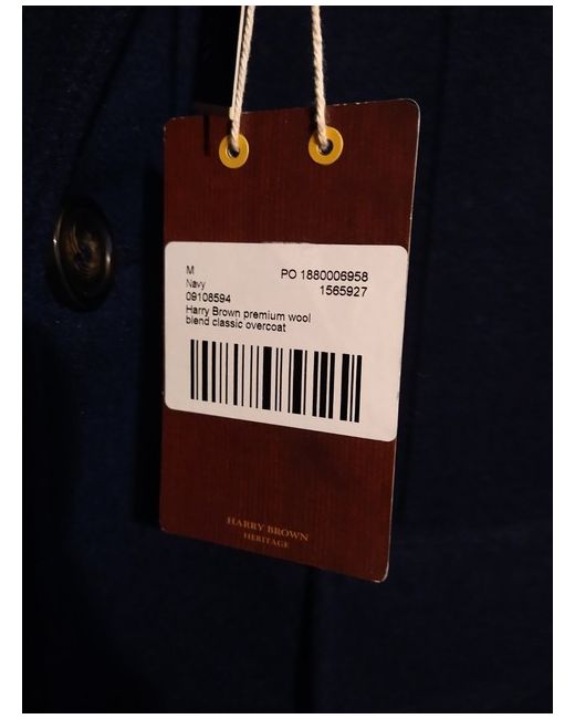 Harry Brown Navy Wool Blend Coat (Medium). Lovely coat, brand new with tags. Navy with a dark blue hue. Size Medium. Underarm-to-underarm length is 19" and length from collar-to-hem is 36". Wool blend - 57% polyester, 35% wool, 7% other fibres. Any questions please feel free to ask.