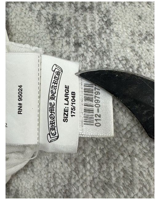 "Rare Chrome Hearts t-shirt in size L, featuring the iconic dagger graphic on the back. Classic design with the brand's signature details, crafted with exceptional quality. Made from premium cotton, ensuring comfort and durability. The shirt is in near-perfect condition, with no visible flaws— an excellent addition to any Chrome Hearts collection. • Measurements: Chest: 53 cm Shoulders: 48 cm Sleeves: 20 cm Length: 74 cm A standout piece for Chrome Hearts fans, versatile for both casual and elevated streetwear looks. & Additional photos or details available upon request. Feel free to reach out with any questions!" VIN STOCK V Size L Price 280$ Cond 9/10 ideal