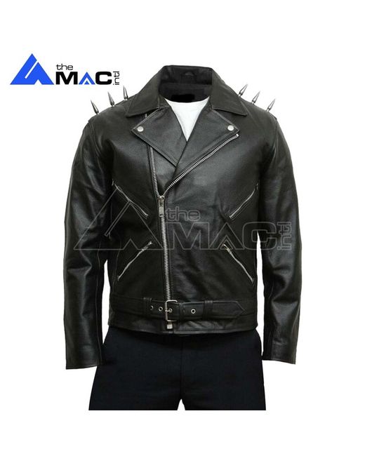 Men's Real Leather Jacket With Devil Spikes Cross Zip Ghost Rider