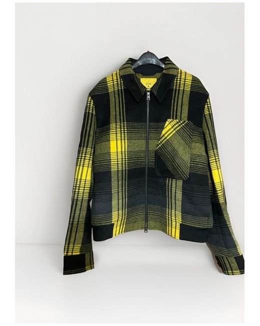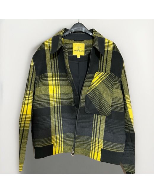 This is a stylish COS x Yeboah checkered bomber jacket in yellow. It is made of wool, designed for men in a regular fit size medium. Perfect for adding a modern twist to your outfit, this jacket combines comfort with a trendy style. 60% Wool, 40% Lyocell