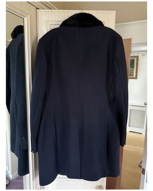 This is a new Féraud men's coat in a classic navy colour with black fur lapels. The coat is a size 46 and features a stylish design that combines elements of a trench coat and an overcoat. Made from wool, it is of high quality and suitable for regular wear. Perfect for adding a sophisticated touch to any outfit, this coat is a must-have for the modern man's wardrobe. Open to offers. Any questions please don’t hesitate to ask.