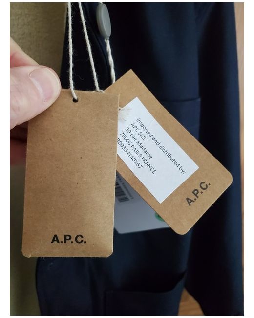 A.P.C. Dorian Chore Jacket with shearling interior lining and collar detail. Condition: Brand new & unworn with tags still attached. Colour: Navy Size: Medium Pit to pit measurement is 22 inches. Features: Button down closure with three front pockets and an internal pocket. Buttoned cuffs.