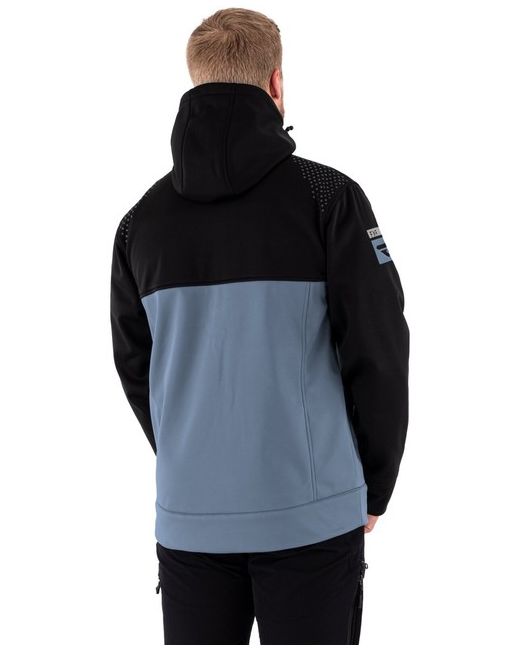 • 290gsm 75D polyester softshell with DWR finish. • 8000mm/3000g/m2 waterproof/breathable Hydrx™ laminate with fleece interior. • Fixed shock-cord adjustable hood. • Screen printed and reflective logos.
