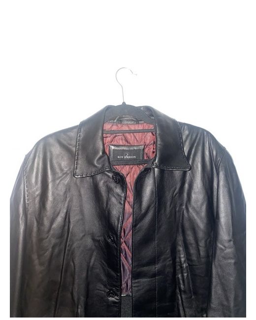 Elevate your style with this stunning Roy Robson leather jacket, designed for the modern man. Crafted from high-quality leather, this trench coat, overcoat and blazer in one offers a unique combination of style and practicality. The black jacket features a collared neckline, pockets and is water-resistant, making it perfect for any occasion. With a size of 46, this designer jacket is a must-have for any fashion-conscious man. The jacket's classic and gothic theme, along with its 90s punk and rock vibe, make it a versatile addition to any wardrobe. Ideal for any season, this jacket is perfect for layering and will keep you stylish and warm.