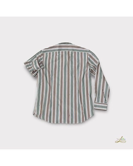 ETRO Striped Shirt Size 42 Elevate your wardrobe with this stylish ETRO shirt. The multicoloured striped design is perfect for both casual and formal occasions and features a collared neckline with button closure and barrel cuffs. Made with breathable cotton material and a slim fit, this dress shirt is both comfortable and modern. Handmade in Italy, this shirt is a perfect addition to any fashionable man's collection. • 100% Cotton • Made in Italy • SKU: L21 1Z600 3114