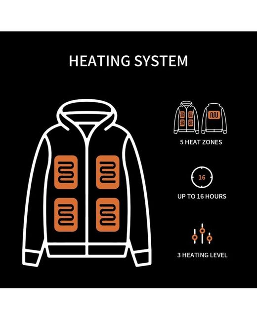 Battery operated jacket is perfect for outdoor activities like winter running, motorcycle, climbing, camping, hiking, skiing, Fishing, Hunting. [5 HEATED AREAS] Heated Jackets has 5 heated areas, include Front Chest x2, Front Pocket x2 and Middle Back x1.
