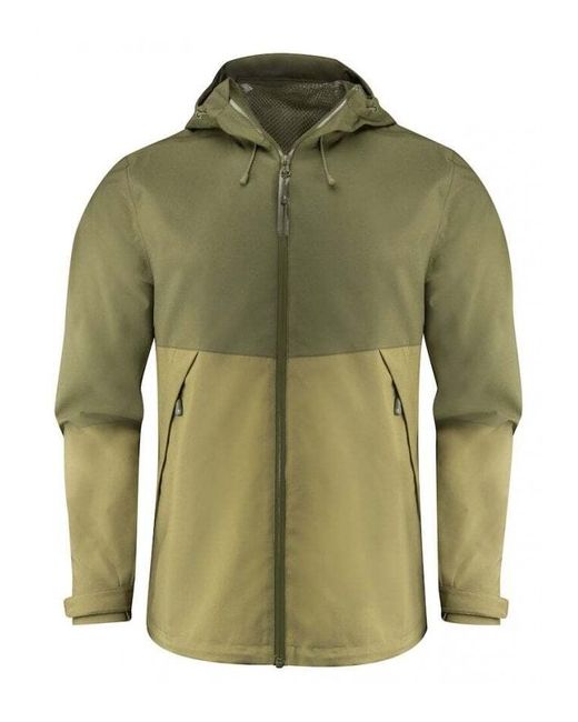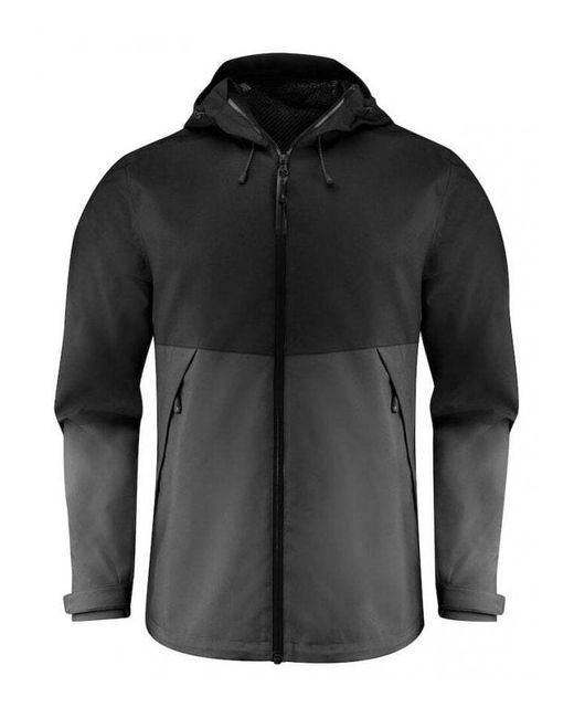 Functional, two-tone shell jacket with taped seams. Waterproof zipper at center front and reversed nylon zippers at side pockets. Hood and bottom hem are adjustable with an elastic cord. Fabric: Shell fabric: 50% polyester, 50% recycled polyester, WP 5000/ MVP 5000, C0 Bionic-Finish Eco Water Resistant Finish.