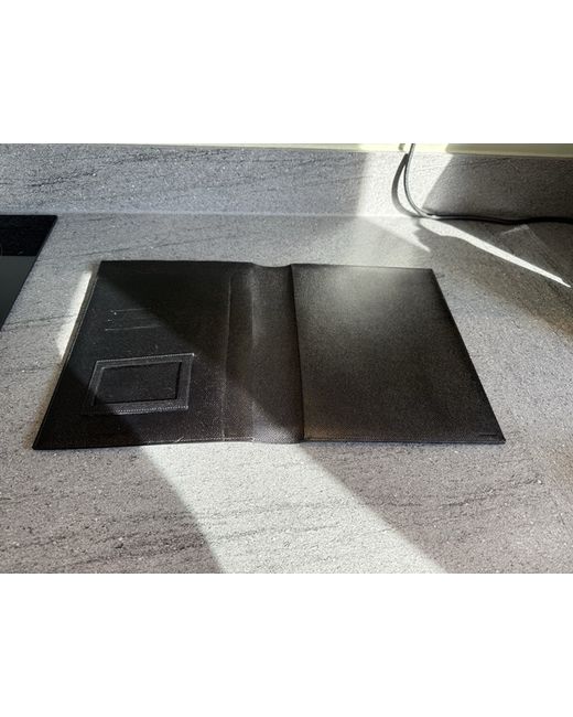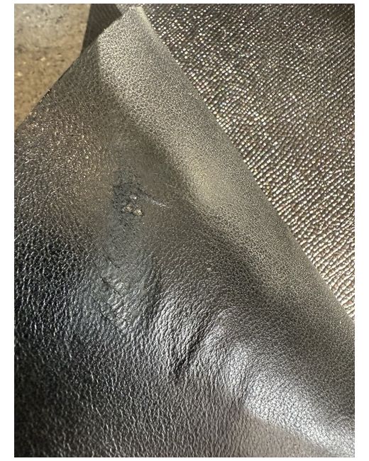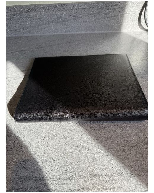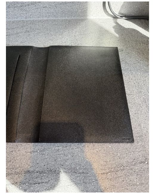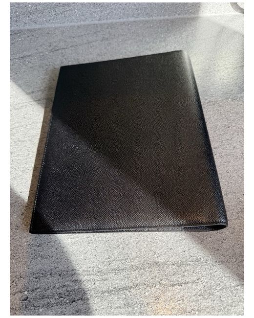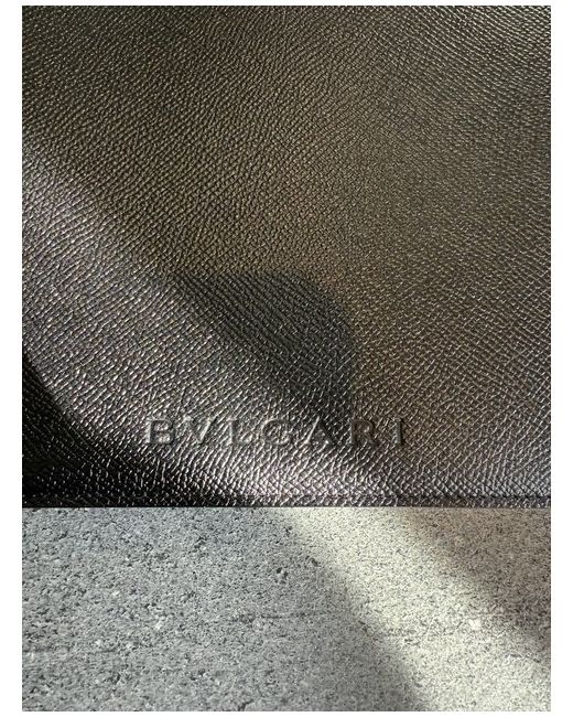 Black leather with Bvlgari logo embossed to front. Externally the item is immaculate, but there is a slight scuff inside the first flap. Made in Italy.