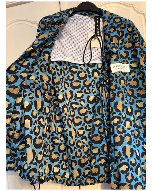Men's Blue Teeming Leopard Print Nylon Packable Coach Jacket Small