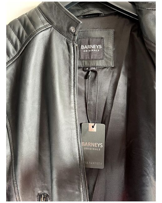 Barneys Leather Biker Jacket with Quilted Ribbed Sleeves L