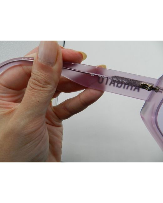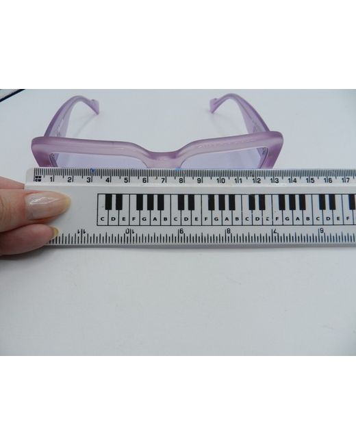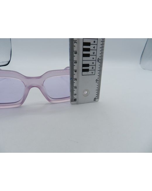 Transparent-design rectangular sunglasses in lilac. Bridge width 2cm. Arm length 14cm.