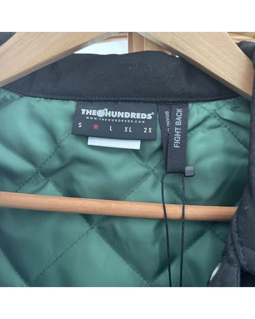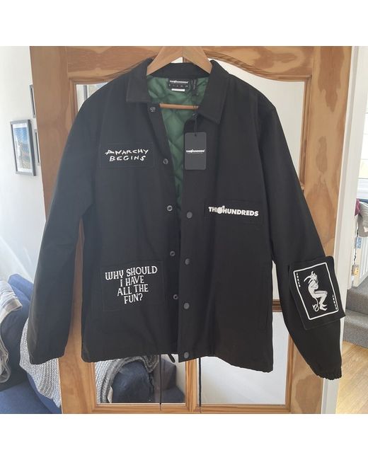 The Hundreds X The Dark Knight. ‘Anarchy’ Coach Jacket. Brand New. Never worn. Really nice limited release from The Hundreds. I’ve looked on the internet and can’t find another one of these jackets in any size, anywhere. Description from the hundreds website - - Lightweight peached cotton canvas - Taffeta diamond quilted lining with 800gsm poly fill - Coach jacket fit - Applique self patches with The Hundreds x Batman: The Dark Knight screen print - TH logo snap button front closure - Self interior placket facing - Single welt pockets with taffteta lining pocket bags - Elastic encased bottom cuffs