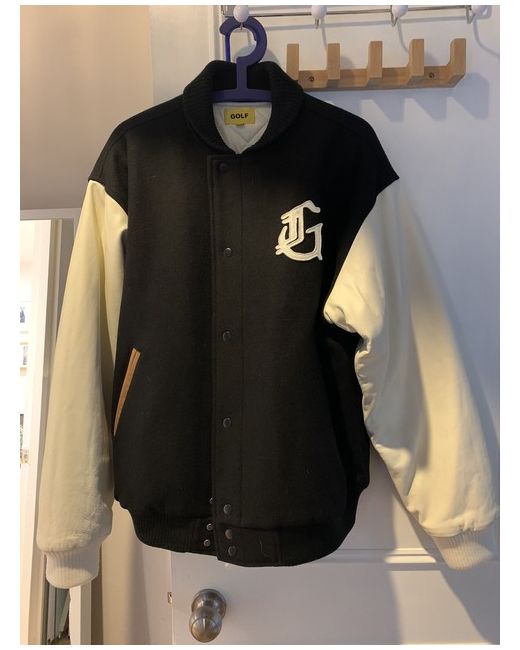 Golf Wang Jacket L. Wool G Letterman Jacket Black with White arms and tan elbows/trim. Still in packaging. I ordered two of everything by accident (check other listings for more) Perfect jacket for autumn in the UK! Pictures are of the one I use, the one I’m selling is still wrapped.