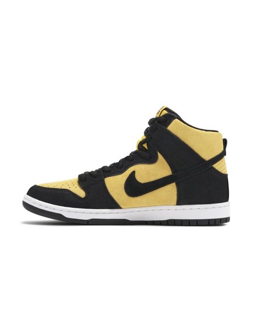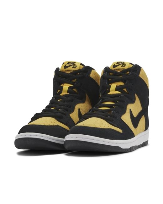 The Nike SB Dunk High Reverse Goldenrod sneaker provides two fantastic and bold colours that work perfectly together: golden yellow and bold black, shown in panels of soft, warm suede. The golden colouring is made all the more striking by the layered black panels, which really allow the yellow to pop.