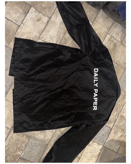 This black bomber jacket from Daily Paper is the perfect addition to your wardrobe. Made of durable polyester, it combines both style and comfort. The jacket is brand new with tags and is available in size small. Its regular fit makes it suitable for any occasion, whether it's a night out or a casual day out. The jacket features a sleek design with a zip closure and ribbed cuffs and hem. The Daily Paper Eze Jacket is a versatile piece that can be dressed up or down. It is a must-have for any fashion-forward man's wardrobe.