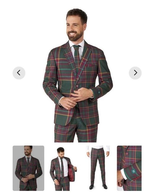 Christmas Suit X Mas Pine Tree Outfit Slim Fit Red and Gold Includes Blazer Pants Tie