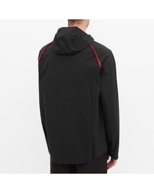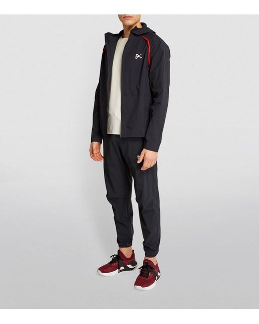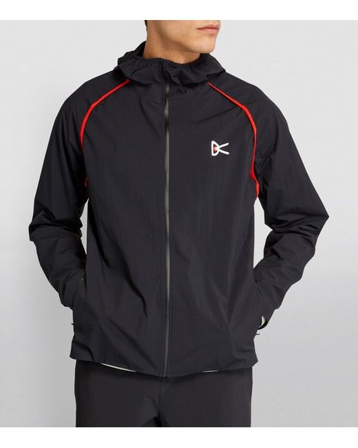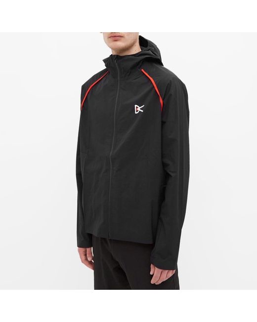 Hooded Jacket. District Vision 'Max Mountain Shell Jacket' in. District Vision. Max Mountain Shell. waist zip pockets, arm pit air-vent holes and. logo upon chest, elasticated hood for comfort. water repellentfabric.