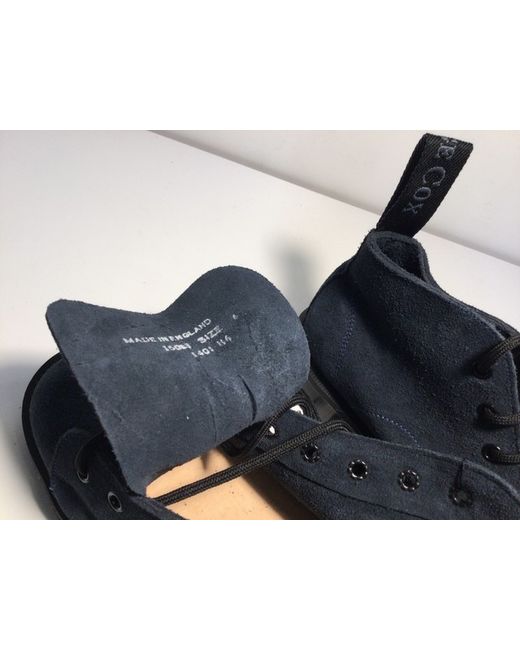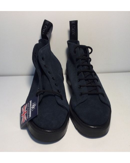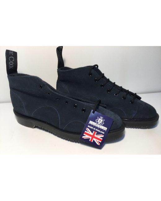GEORGE COX Blue Suede Classic ‘Monkey’ Boot, made in collaboration with Fred Perry and based on a early Czechoslovakian army boot. Features stitch detail to uppers, 7 eyelets, branded George Cox D-loop at heel, Suede uppers and inners, leather footbed, rubber sole. Made in England. These boots currently retail for £195 and are no longer available in the blue suede finish - Go on, be different! Brand New with original tags intact, with box and shoe bag. Weight before packaging 1394g - FREE EXPEDITED SHIPPING via EVRI with tracking and upgraded compensation up to purchase price Thanks for looking, please see my other listings for more quality boots and shoes, having a mammoth and long overdue declutter :-)