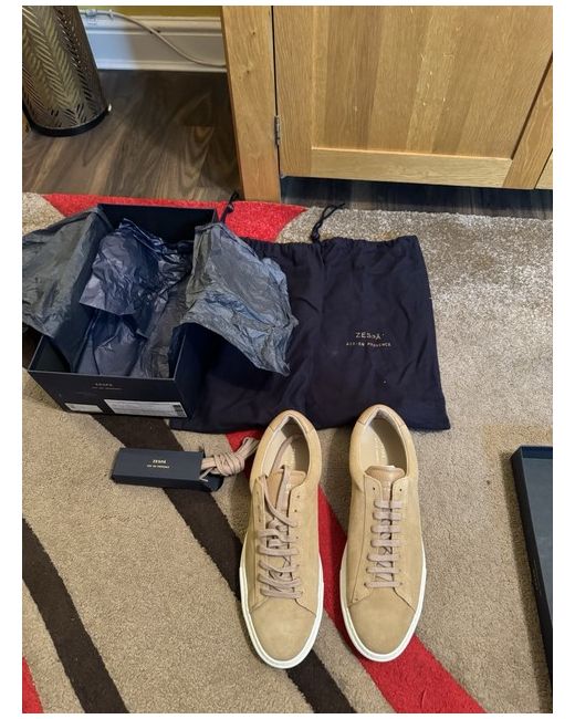 Step into comfort and style with these sleek Zespà trainers, a perfect addition to any modern man's wardrobe. The size 10 sneakers feature a luxurious beige suede upper, combining a soft touch with durable wearability. Elevate your casual attire with their understated yet sophisticated design, crafted to complement a variety of looks. Whether you're running errands or meeting friends, these versatile trainers are sure to be your go-to footwear choice for everyday elegance.