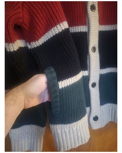 100% Lambswool. Pendleton Ranger. Heavy Chunky Knit Cardigan. button front cardigan with faux horn buttons. Closure type Dry Clean Only. Care instructions.