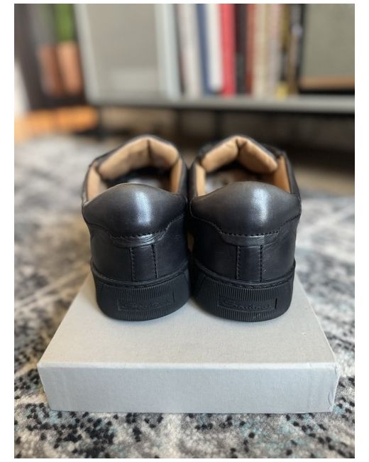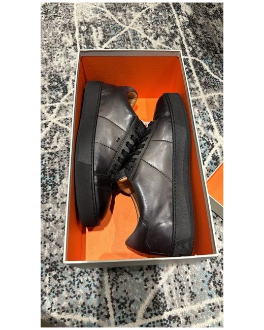 Elevate your sneaker game with these sleek black trainers from Santoni. Designed for men with a UK shoe size of 7.5, these trainers are the perfect addition to any wardrobe. The brand's attention to detail is evident in the superior quality of the shoe's materials and design. Step out in style with these versatile trainers that can be dressed up or down to suit any occasion. The black colourway pairs well with any outfit, while the comfortable fit and sneaker style ensure you look and feel great all day long. Add these Santoni trainers to your shoe collection today.
