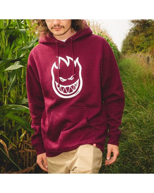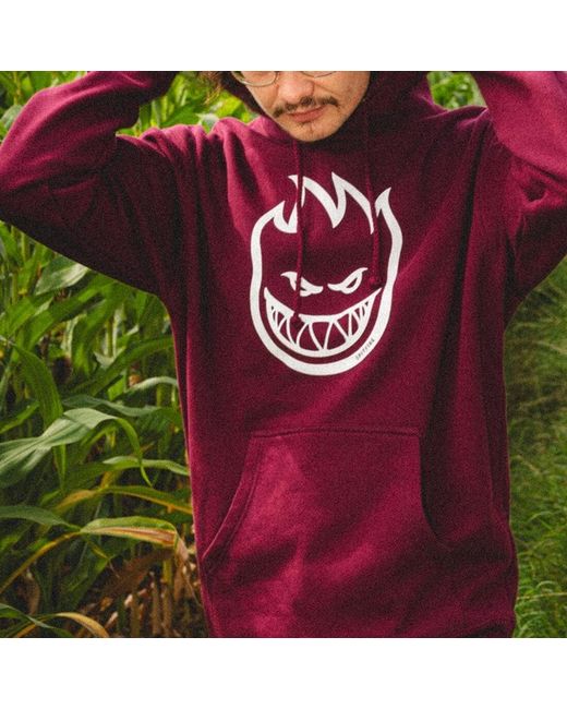 The Spitfire Bighead pullover hoodie is a premium hooded sweatshirt made from a soft brushed fabric and features a one-colour screen Bighead logo on the centre chest. Front “kangaroo” pocket. Screenprint logo design on the chest.