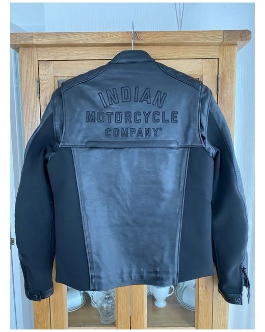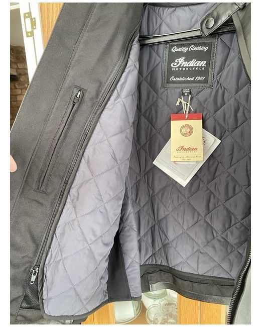 For sale is this Stunning Indian Motorcycle Black Cowhide Leather Jacket in Brand New Condition with Tags Never Worn bought as a gift. Comes with Removable inner lining/waistcoat. Size Medium. Comes with removable light weight Armour in Shoulders and Elbows. Zipped outer pockets and 2 inner pockets plus 1 pocket in the lining. 2 outer zipped air vents, Zipped and press stud Cuffs. Coming with Indian Coat Hanger. Grab a bargain and Ride your Indian Motorcycle with Pride. Coming from a Smoke and Pet free Home, please see Photos for what you are Buying and thanks for looking. Please note some of the lining looks a lighter colour than it actually is due to the light it’s a dark grey almost black.