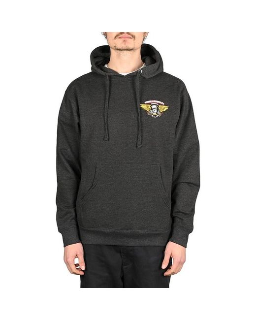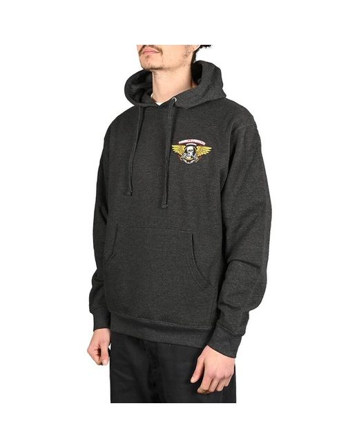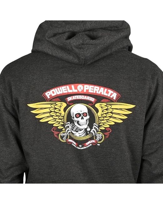 The Powell Peralta Winged Ripper pullover hoodie is a quality hooded sweatshirt made from a soft brushed fabric and features the classic “Winged Ripper” logo on the left chest and centre back. A heathered dark grey hoodie, with colourful print.