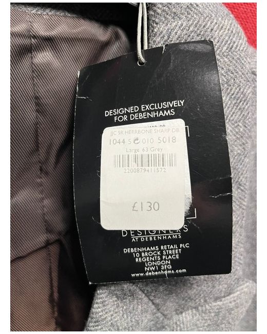 Jasper Conran Herringbone Double Breasted Coat. Double breasted fastening. 58% wool, 36% polyester, 3% nylon, 2% acrylic, 1% viscose. Grey Large. Structured jacket.