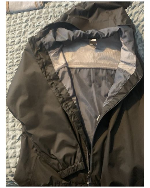 Stay stylish and comfortable in this black North Face rain jacket. Designed to keep you dry in wet conditions, this jacket is made from high-quality polyester material. Its windbreaker style and regular size make it perfect for men who love to stay active. The jacket comes in a classic black colour that matches any outfit. It has a brand logo on the Rain jacket, which adds to its style. This jacket is ideal for those who are looking for a versatile and functional piece of clothing. Whether you're going for a hike or running errands, this North Face rain jacket will keep you dry and comfortable.